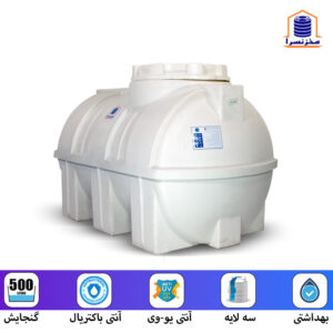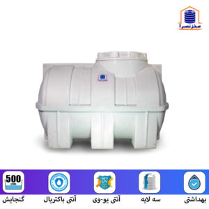 منبع آب 500 لیتری افقی خوابیده سه لایه آنتی باکتریال