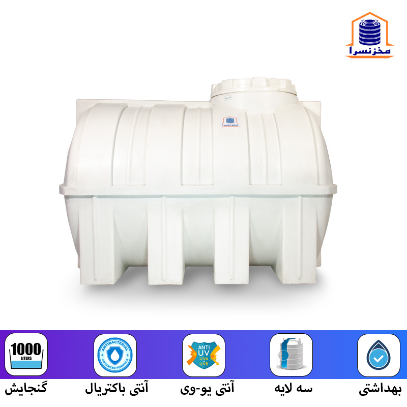 منبع آب افقی 1000 لیتری پلی اتیلنی سه لایه آنتی باکتریال